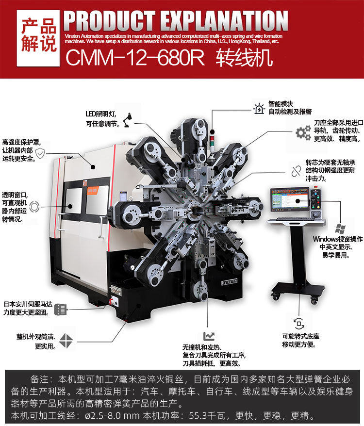 2、擁有傳統(tǒng)8工位機械之優(yōu)點(生產(chǎn)高難度的彈簧、更容易、更快捷、更精確)。