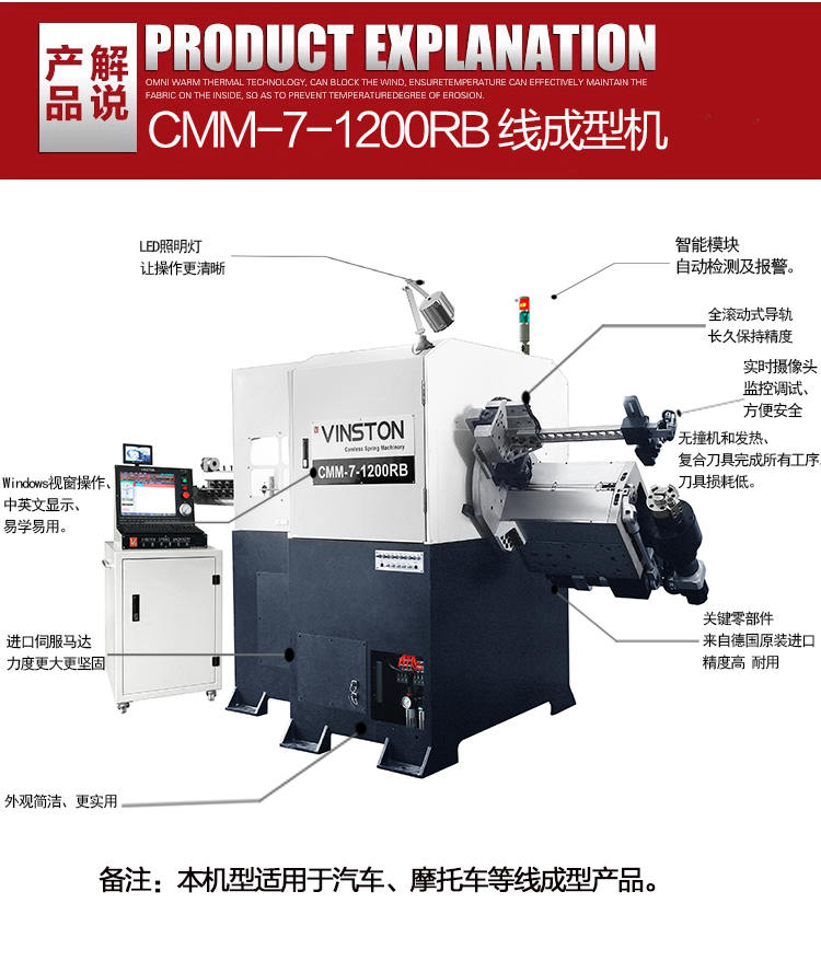 7、適用于汽車、摩托車、飛機(jī)、娛樂健身器材、工業(yè)設(shè)備等大線徑線材成形產(chǎn)品。