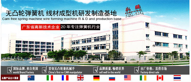 東莞永騰自動(dòng)化設(shè)備有限公司是一家專業(yè)生產(chǎn)CNC多軸多功能無(wú)凸輪電腦彈簧機(jī)、線材成型機(jī)的美國(guó)獨(dú)資企業(yè)。公司從2001年開始運(yùn)用美國(guó)先進(jìn)的伺服控制技術(shù)進(jìn)行一次具有重要意義的技術(shù)改革,打破傳統(tǒng)的凸輪帶動(dòng)成型模式,成為行業(yè)創(chuàng)新的無(wú)凸輪模式兼?zhèn)錂C(jī)械手的彈簧機(jī)??杉庸ぞ€徑0.15-12mm范圍彈簧及線材成型。