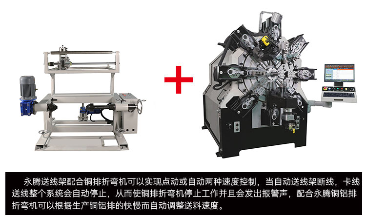 桶式料架是配合銅排折彎機生產(chǎn)銅排之用,采用變頻器技術(shù)與本公司的CNC控制系統(tǒng)控制技術(shù)相結(jié)合的控制方式,有助于提高生產(chǎn)銅排的精度與速度,同時也可以作為其它機器送料之用。本設(shè)備配合永騰銅排折彎機可以實現(xiàn)點動或自動兩種速度控制,當(dāng)自動送線架斷線、卡線,送線整個系統(tǒng)會自動停止從而使銅排折彎機停止工作并且會發(fā)出報警聲,配合本公司的銅排折彎機可以根據(jù)生產(chǎn)銅排的快慢而自動調(diào)整送料速度。
