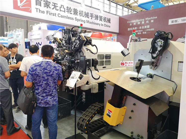 上海展會第一天,永騰展會CMM-12-450R彈簧機(jī)吸引到參展商駐足觀看。